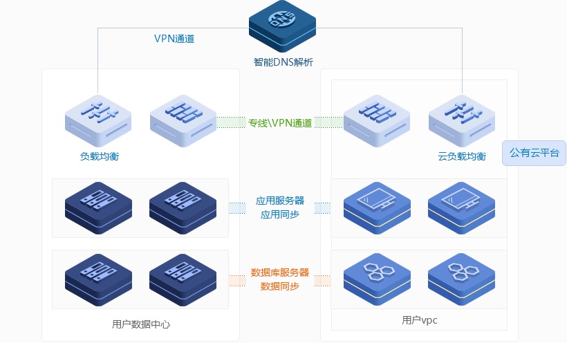 專線連通后,在云平臺(tái)上部署與您現(xiàn)有數(shù)據(jù)中心相同的業(yè)務(wù)系統(tǒng),同時(shí)實(shí)現(xiàn)應(yīng)用服務(wù)器數(shù)據(jù)同步、數(shù)據(jù)庫 數(shù)據(jù)同步。