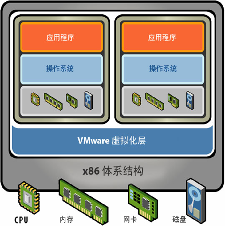 當(dāng)今的 x86 服務(wù)器的體系結(jié)構(gòu)使其在同一時(shí)間只能運(yùn)行一個(gè)操作系統(tǒng)。 通過抽象化物理硬件的操作系統(tǒng)和應(yīng)用資源,服務(wù)器虛擬化擺脫了 x86 服務(wù)器傳統(tǒng)的一對(duì)一體系結(jié)構(gòu)模式,實(shí)現(xiàn)了更加經(jīng)濟(jì)高效、更敏捷、更簡(jiǎn)單服務(wù)器環(huán)境。 借助服務(wù)器虛擬化,多個(gè)操作系統(tǒng)能夠以虛擬機(jī)方式運(yùn)行在一個(gè)物理服務(wù)器上,每個(gè)虛擬機(jī)均可訪問底層服務(wù)器計(jì)算資源。 服務(wù)器虛擬化釋放出了當(dāng)今 x86 服務(wù)器的強(qiáng)大潛能。 目前,大多數(shù)服務(wù)器的容量利用率不足 15%;不但效率非常低下,而且還導(dǎo)致了服務(wù)器數(shù)量劇增并增加了復(fù)雜性。 VMware vSphere 提供全面的服務(wù)器虛擬化平臺(tái),可實(shí)現(xiàn)以下成效:
