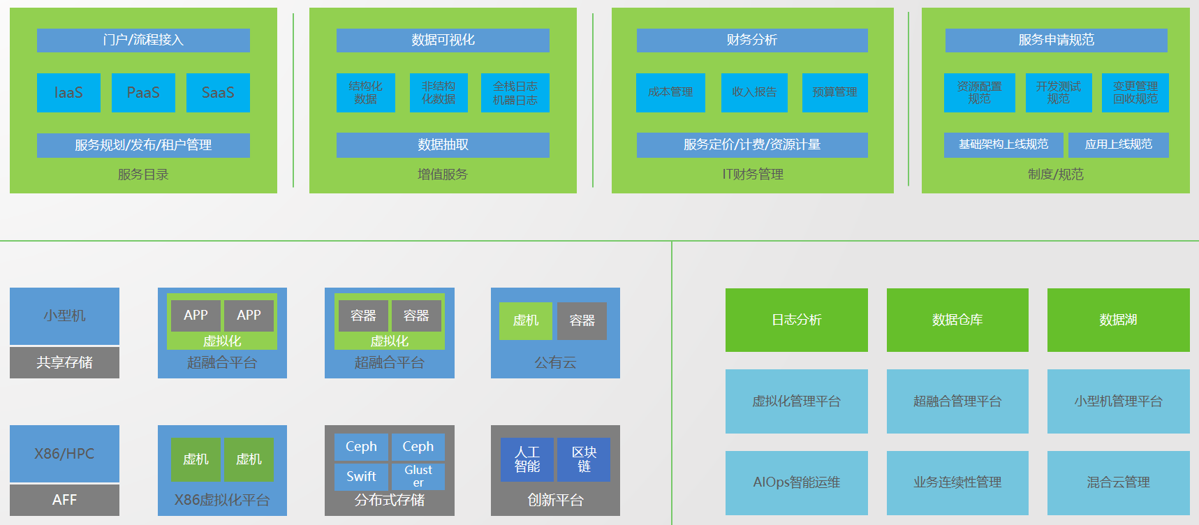 管理和安全平臺:實現(xiàn)對資源的整合管理和快速交付,同時實現(xiàn)整體安全防護