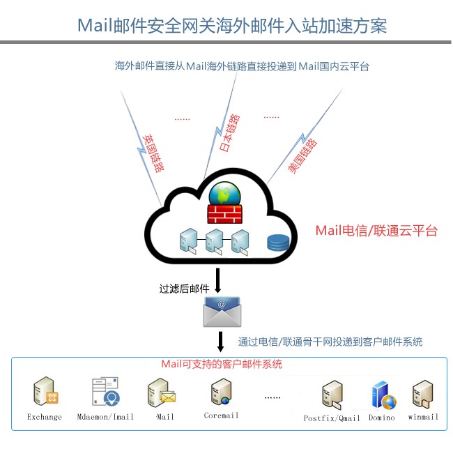 能與Exchange/U-mail/Coremail/Postfix/Qmail/Mdaemon/Imail/Domino/winmail等各大郵件系統(tǒng)完美兼容,且windows或linux兩種操作系統(tǒng)都支持。· 獨(dú)有技術(shù)解決海外郵件\南北郵件接收問(wèn)題