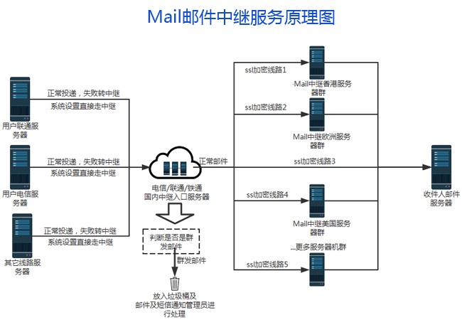 三昶在全球各地廣設(shè)中繼服務(wù)器集群,智能優(yōu)化郵件路由系統(tǒng),為海外郵件發(fā)送提供最優(yōu)鏈路發(fā)送郵件。無(wú)論您的郵件服務(wù)器接入點(diǎn)是電信或是聯(lián)通,均能高速訪問(wèn),采用智能DNS技術(shù)(國(guó)內(nèi)能定位到省,國(guó)外能定位到國(guó)家,自動(dòng)為您接入離您最快的服務(wù)器),解決南北互聯(lián)互通和海外郵件發(fā)送問(wèn)題。