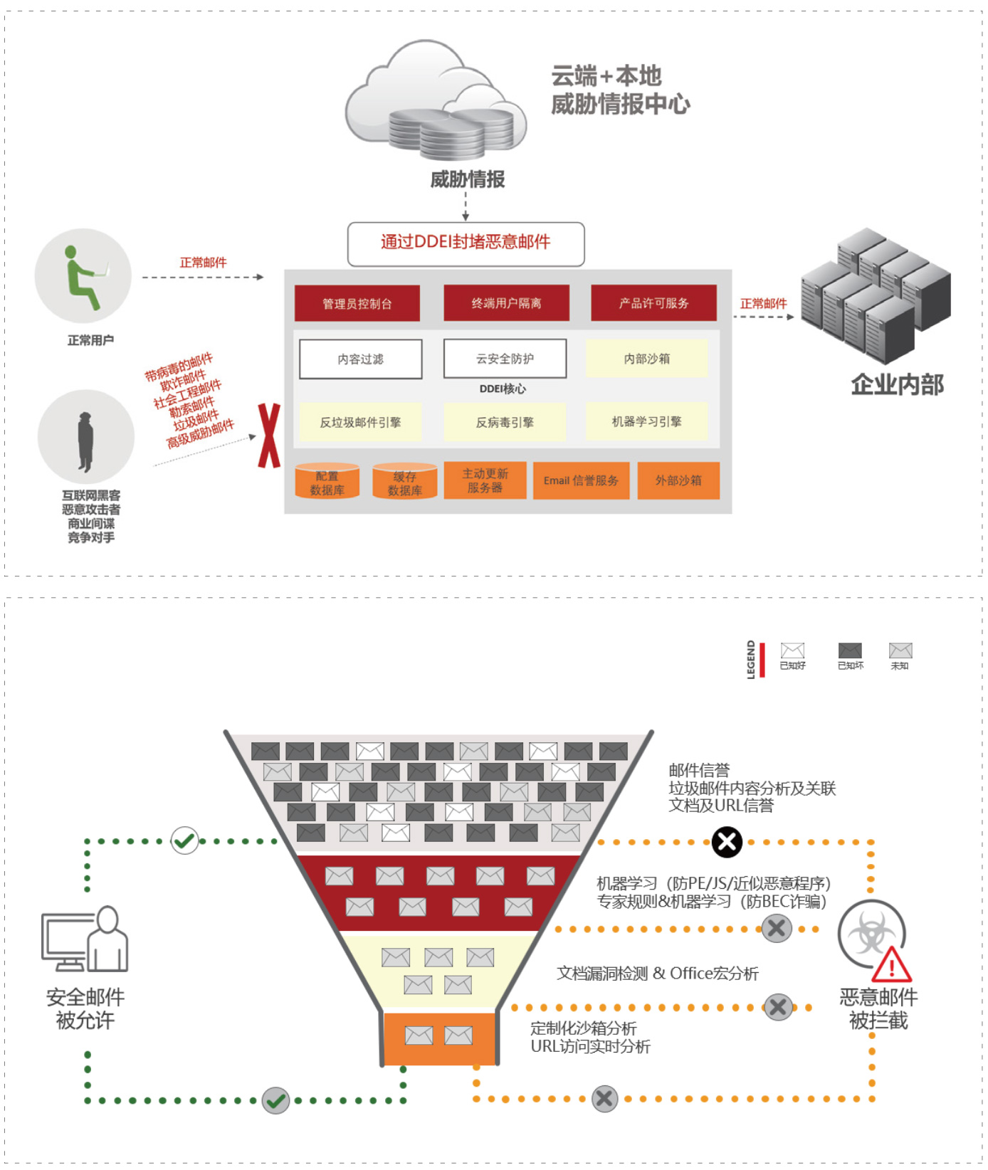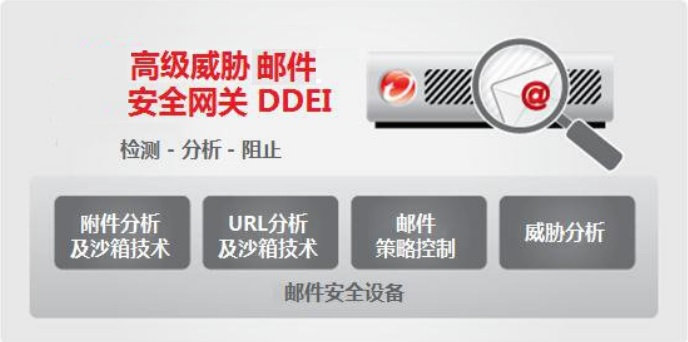 高級(jí)威脅郵件安全網(wǎng)關(guān)(DDEI)與用來檢測(cè)和阻止定向工程郵件所導(dǎo)致的網(wǎng)絡(luò)攻擊及數(shù)據(jù)泄漏。它采用先進(jìn)的惡意軟件檢測(cè)引擎,URL分析以及文件和Web沙箱技術(shù),可快速識(shí)別幵阻止戒隑離這些定向工程郵件。