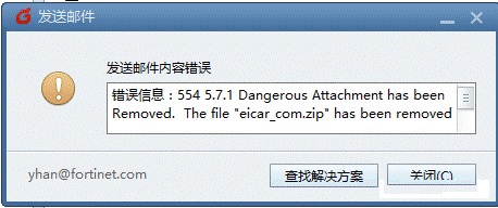 當(dāng)郵件附件中帶有病毒時,FortiGate會自動插入提醒信息,通知收件人由于附件帶毒,所以被FortiGate刪除。提示信息可以由管理員自己來設(shè)置。
