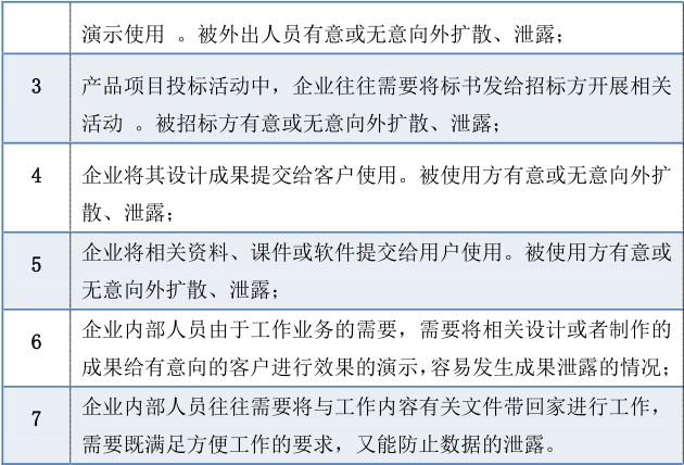 表2、數(shù)據(jù)離線外發(fā)風(fēng)險-移動辦公、效果展示、協(xié)作外發(fā)等應(yīng)用場景