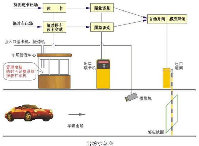 2 ?出口部分主要由感應(yīng)卡讀卡器、道閘、車輛檢測線圈組成;